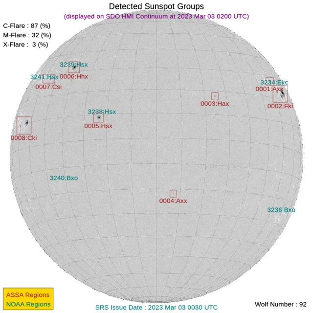太陽フレアと黒点数(2023年03月03日更新)※中規模&CME到着予測あり