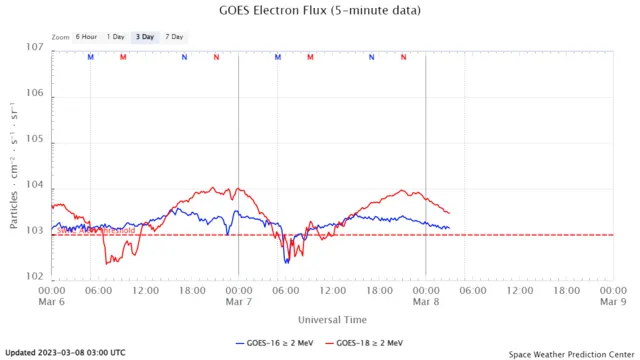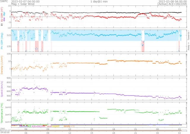 現在540~620km/s前後で速度にバラつきがありましたが徐々に下がり、現在450km/s前後で推移しています