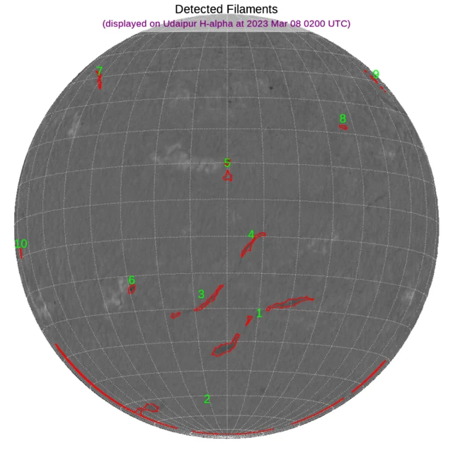その他、北半球西側、中心付近、南の極近くにもフィラメントがあります