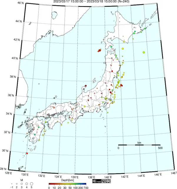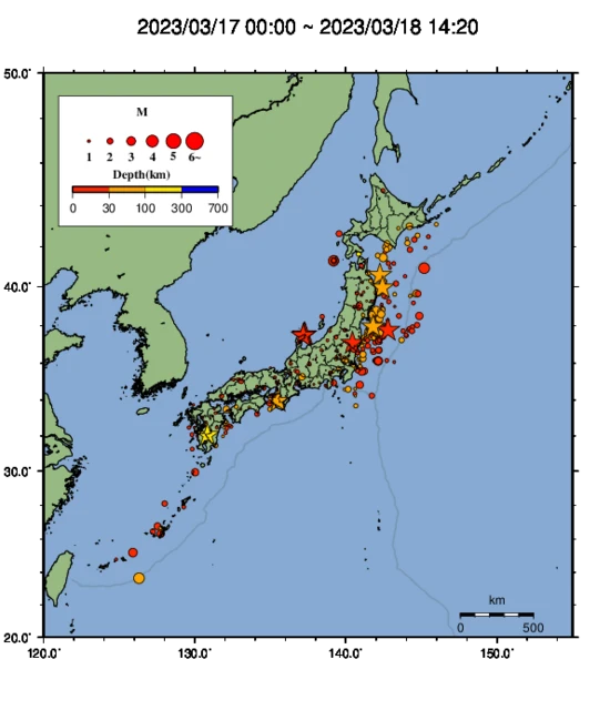 ●Hi-net日本地震分布と気象庁・・・hi-netの小笠原のデータは掲載日がずれて反映されるようです(翌々日に掲載)。掲載されないものもあるようなので気象庁の画像も付けます