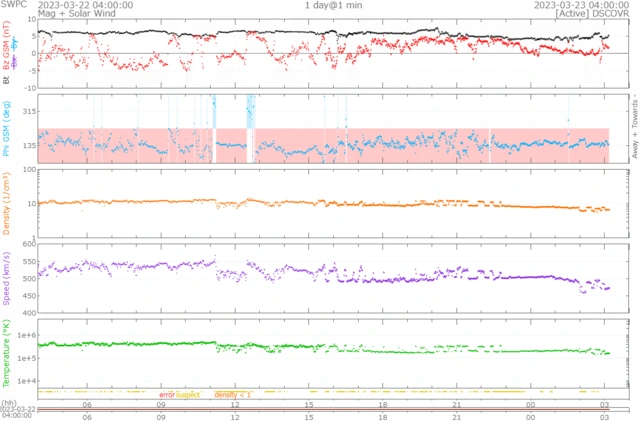 一時550km/s前後まで上がりましたが少し下がり、現在500km/s前後で推移しています
