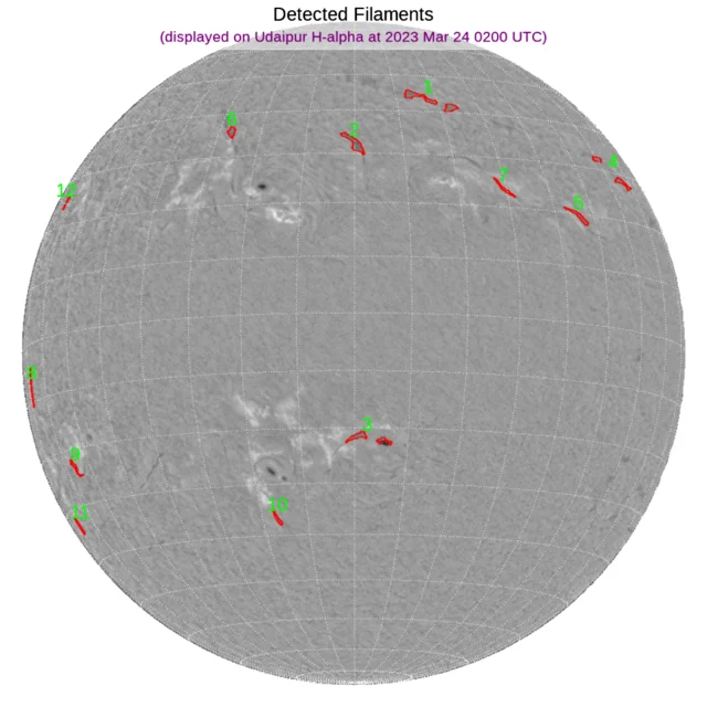 北半球西側、南半球中心~東寄り、東端にフィラメントがあります