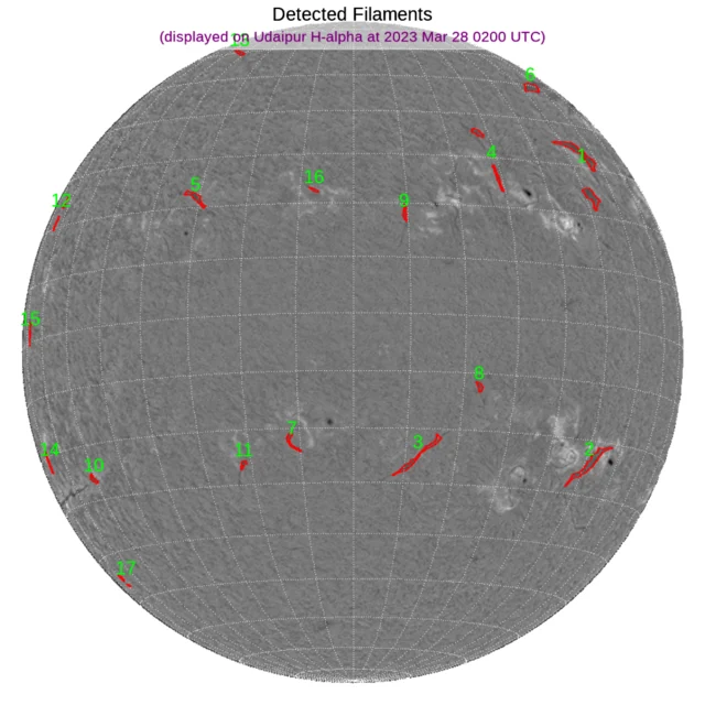北半球(高緯度)西端・東側と、南半球西側~東端にフィラメントがあります