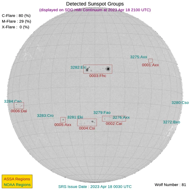 現時点で地球正面の黒点群は3279,3281,3282です。←黒点番号が振られていない活動領域でもフレアは発生しますので、あくまで目安として捉えてください。