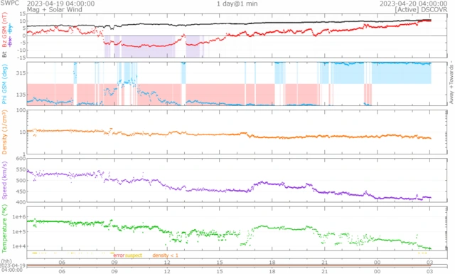 540km/s前後で推移していましたが徐々に下がり、現在420km/s前後で推移しています