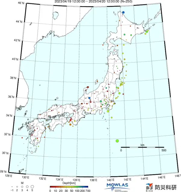 ●Hi-net日本地震分布と気象庁・・・hi-netの小笠原のデータは掲載日がずれて反映されるようです(翌々日に掲載)。掲載されないものもあるようなので気象庁の画像も付けます