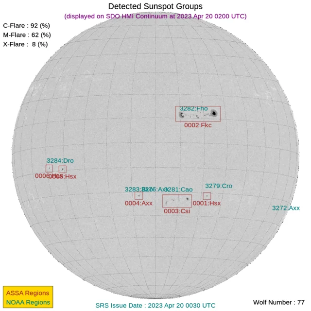 太陽フレアと黒点数(2023年04月20日更新)※CME到着予測あり