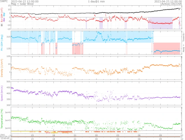 450km/s前後で推移していましたが徐々に下がり、現在370km/s前後で推移しています
