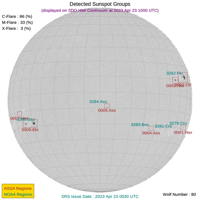 現時点で地球正面の黒点群は3284です。←黒点番号が振られていない活動領域でもフレアは発生しますので、あくまで目安として捉えてください。