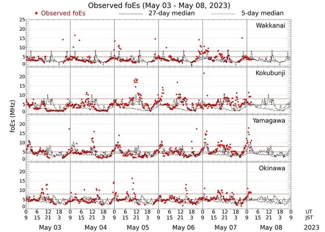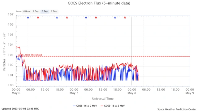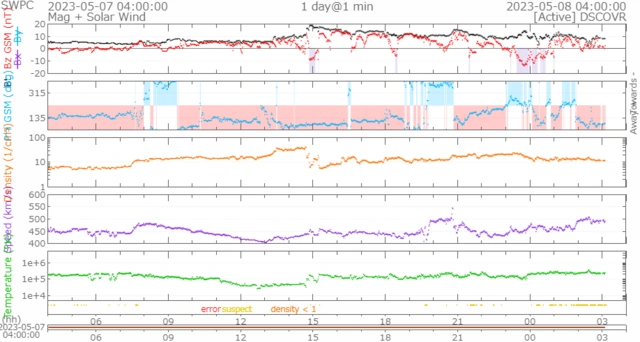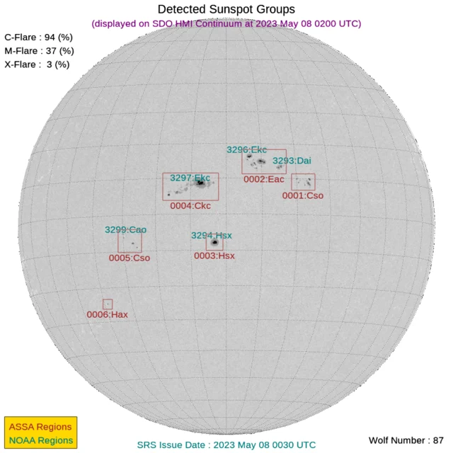 太陽フレアと黒点数(2023年05月08日更新)※中規模太陽フレア&CME到着予測あり