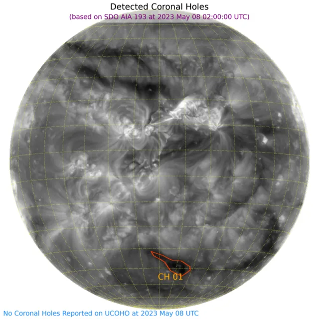 南半球(高緯度・わりと極近く)にコロナホールがあります