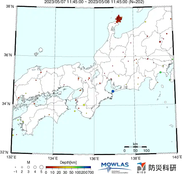 ●Hi-net日本地震分布と気象庁・・・hi-netの小笠原のデータは掲載日がずれて反映されるようです(翌々日に掲載)。掲載されないものもあるようなので気象庁の画像も付けます