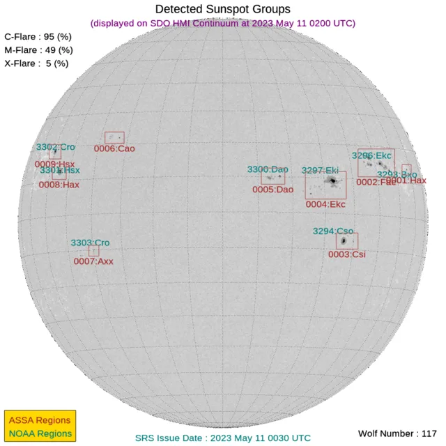 現時点で地球正面の黒点群は3300です。←黒点番号が振られていない活動領域でもフレアは発生しますので、あくまで目安として捉えてください。