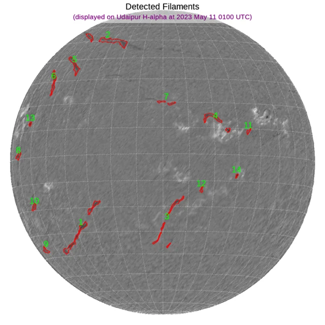 南半球中心付近、東端に南北に細長いフィラメントがあります