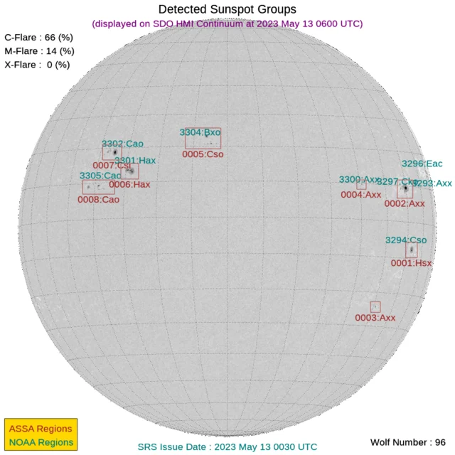 現時点で地球正面の黒点群は3304です。←黒点番号が振られていない活動領域でもフレアは発生しますので、あくまで目安として捉えてください。