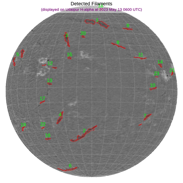 中心付近と南半球西側以外の領域にフィラメントがあります