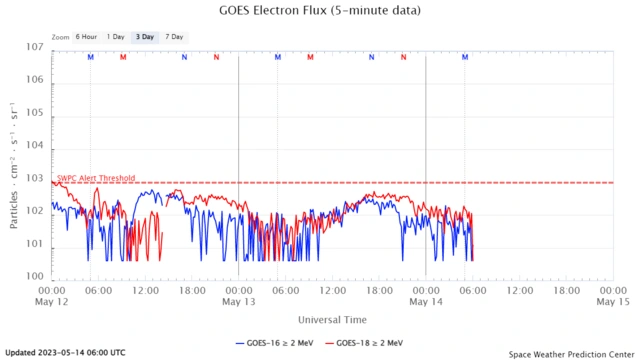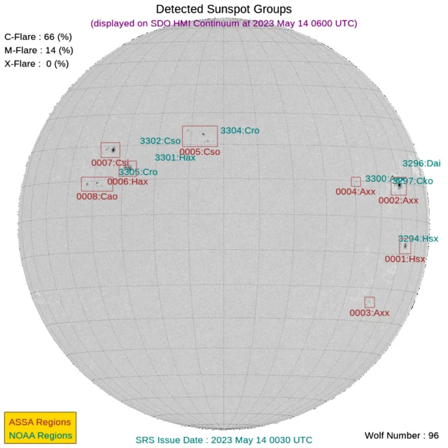 太陽フレアと黒点数(2023年05月14日更新)※CME到着予測あり