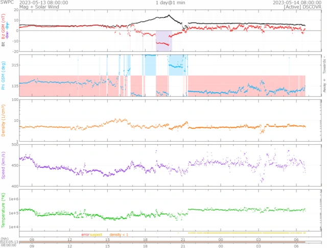 530km/s前後で推移していましたが徐々に下がり、現在440~460km/s前後で速度にバラツキがあります
