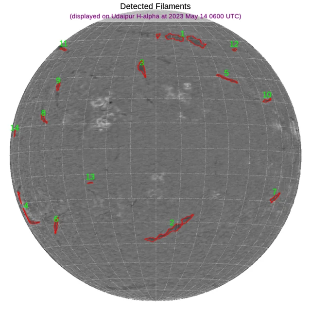 北半球・南半球ともやや高緯度に長めのフィラメントがあります