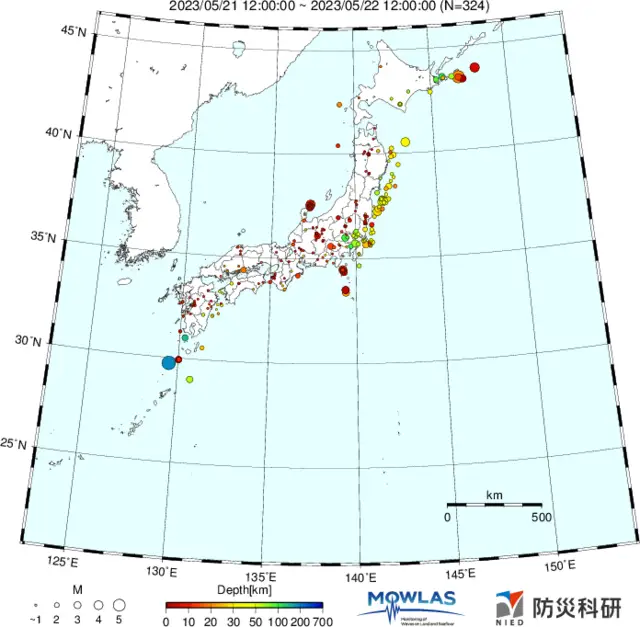 ●Hi-net日本地震分布と気象庁・・・hi-netの小笠原のデータは掲載日がずれて反映されるようです(翌々日に掲載)。掲載されないものもあるようなので気象庁の画像も付けます