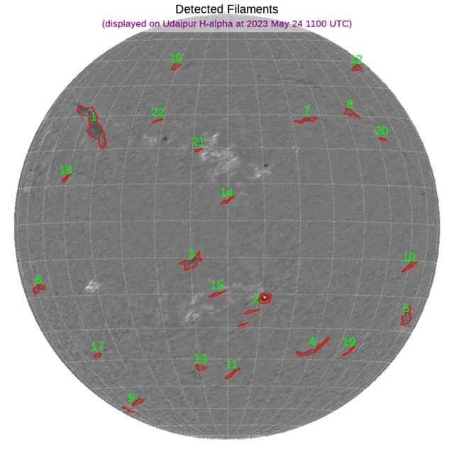 赤道西側・東側、両極以外の地域にフィラメントがあります
