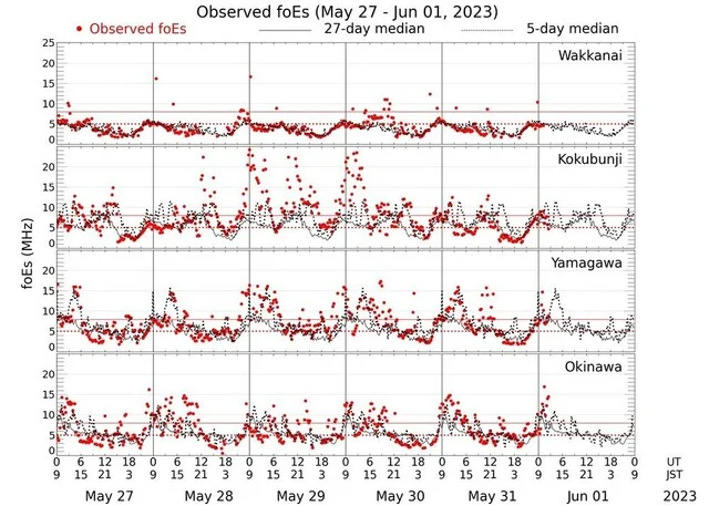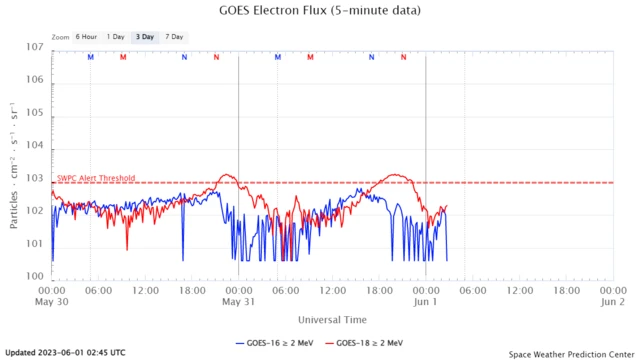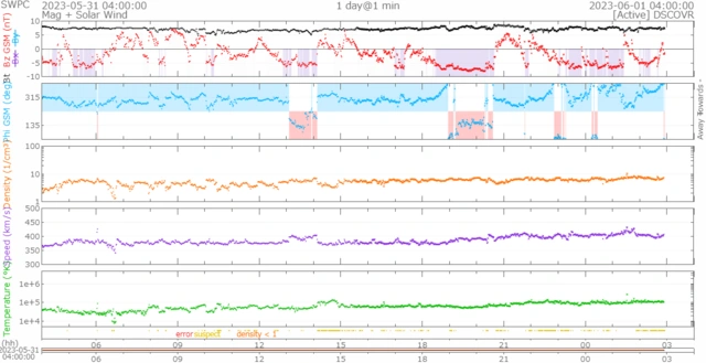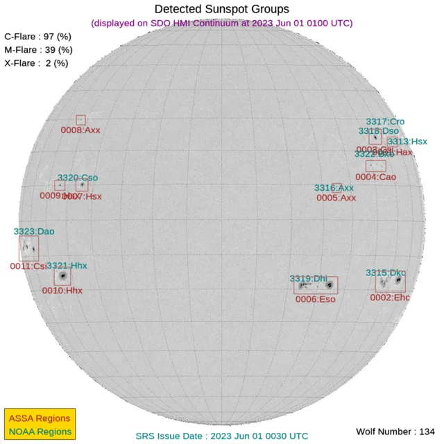 太陽フレアと黒点数(2023年06月01日更新)※中規模多発&CME到着予測あり