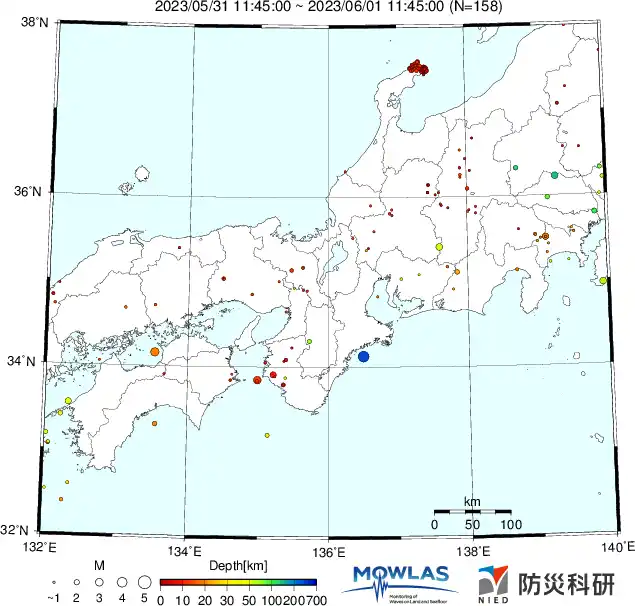 ●Hi-net日本地震分布と気象庁・・・hi-netの小笠原のデータは掲載日がずれて反映されるようです(翌々日に掲載)。掲載されないものもあるようなので気象庁の画像も付けます