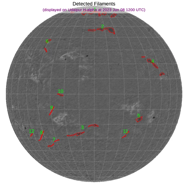 北の極付近、北半球西側、南半球にフィラメントがあります