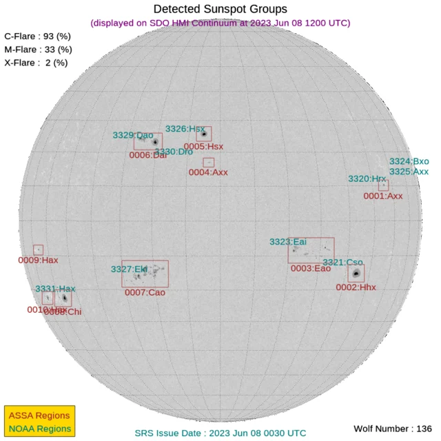 太陽フレアと黒点数(2023年06月08日更新)※CME到着予測あり