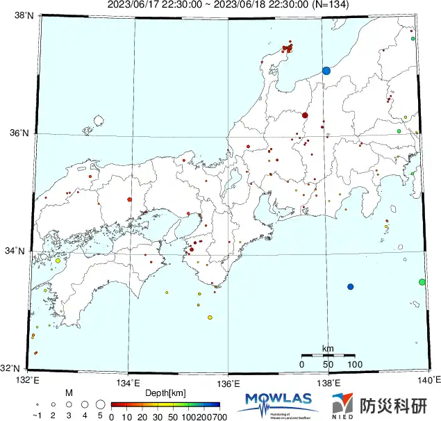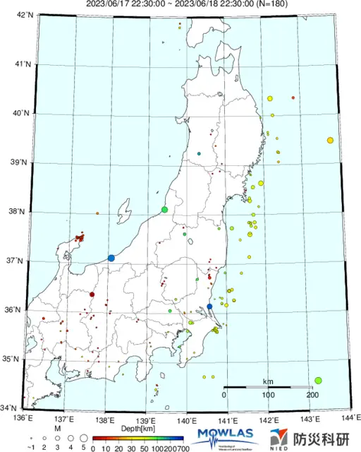●Hi-net日本地震分布と気象庁・・・hi-netの小笠原のデータは掲載日がずれて反映されるようです(翌々日に掲載)。掲載されないものもあるようなので気象庁の画像も付けます