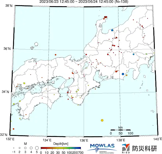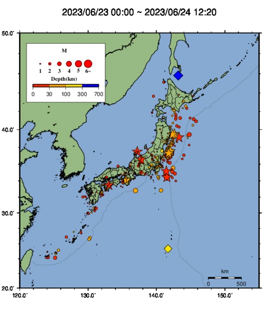 ●Hi-net日本地震分布と気象庁・・・hi-netの小笠原のデータは掲載日がずれて反映されるようです(翌々日に掲載)。掲載されないものもあるようなので気象庁の画像も付けます