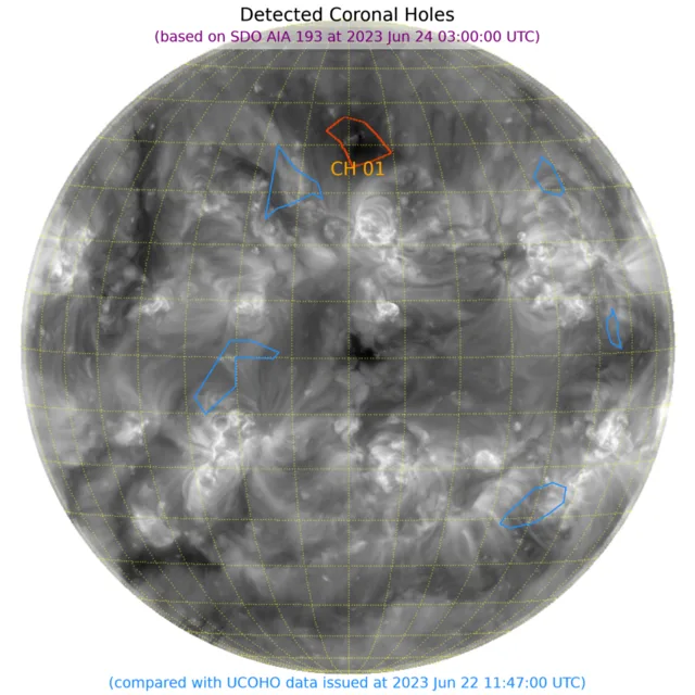 北半球(やや高緯度)中心付近に小さなコロナホールがあります
