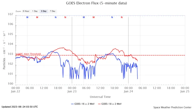 太陽フレアと黒点数(2023年06月24日更新)※CME到着予測あり