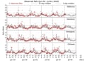 一時500km/s前後まで上がりましたが、現在370km/s前後で推移しています