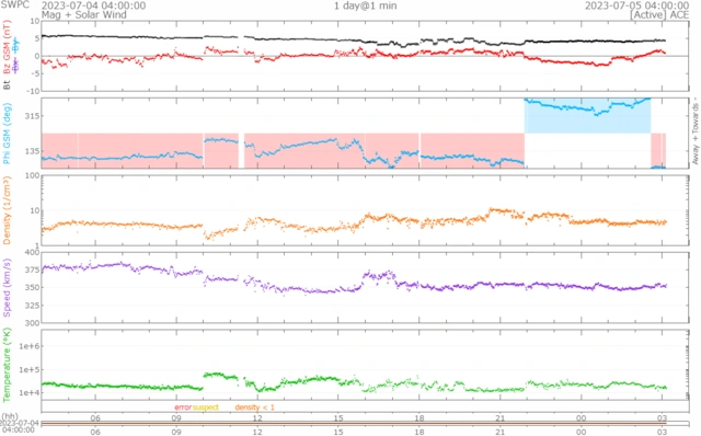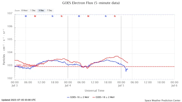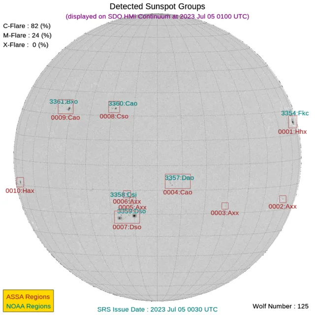 太陽フレアと黒点数(2023年07月05日更新)※中規模&CME到着予測あり