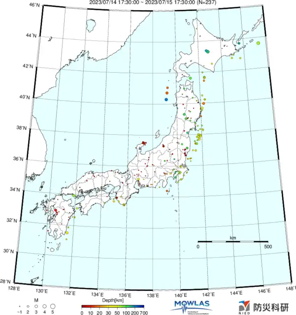 ●Hi-net日本地震分布と気象庁・・・hi-netの小笠原のデータは掲載日がずれて反映されるようです(翌々日に掲載)。掲載されないものもあるようなので気象庁の画像も付けます