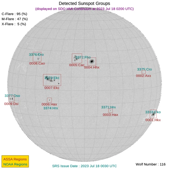 現時点で地球正面の黒点群は[3371, 3372]です。←黒点番号が振られていない活動領域でもフレアは発生しますので、あくまで目安として捉えてください。