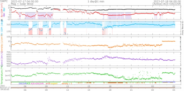 440km/s前後で推移していましたが徐々に上がり、一時610km/s前後まで上がりました。現在は530km/s前後で推移しています