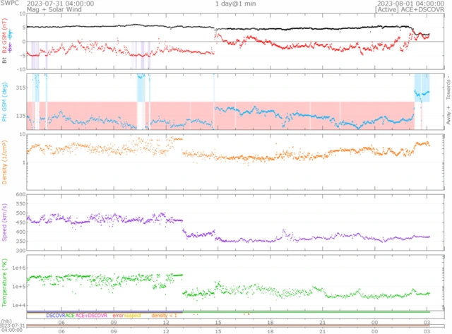 450km/s前後で推移していましたが徐々に下がり、現在370km/s前後で推移しています。