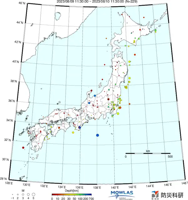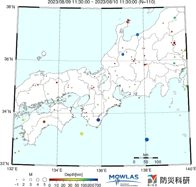 ●Hi-net日本地震分布と気象庁・・・hi-netの小笠原のデータは掲載日がずれて反映されるようです(翌々日に掲載)。掲載されないものもあるようなので気象庁の画像も付けます