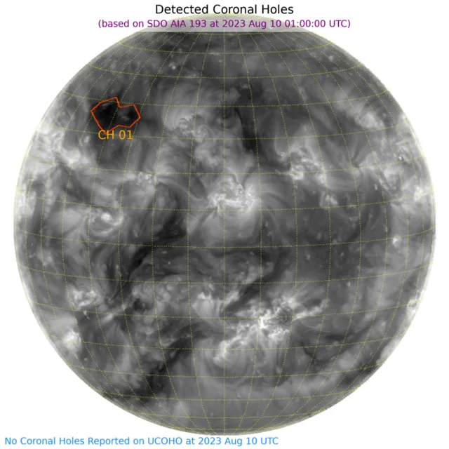 北半球東端に小さなコロナホールがあります
