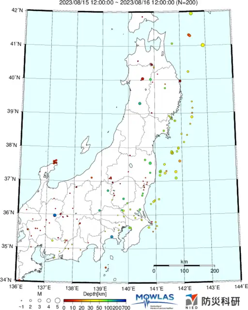 ●Hi-net日本地震分布と気象庁・・・hi-netの小笠原のデータは掲載日がずれて反映されるようです(翌々日に掲載)。掲載されないものもあるようなので気象庁の画像も付けます