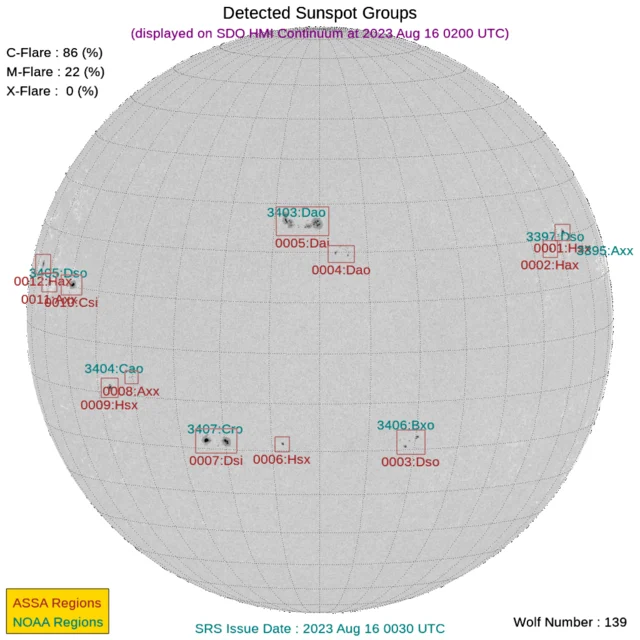 太陽フレアと黒点数(2023年08月16日更新)