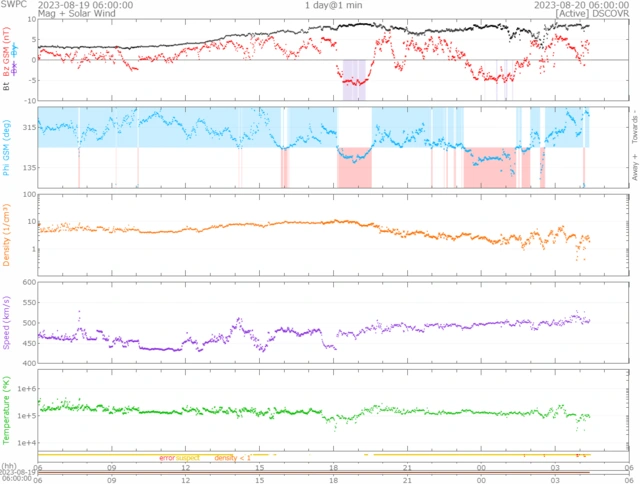 一時420km/s前後まで下がりましたが、現在510km/s前後で推移しています