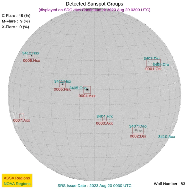 太陽フレアと黒点数(2023年08月20日更新)※CME到着予測あり