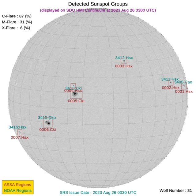 太陽フレアと黒点数(2023年08月26日更新)※CME到着予測あり