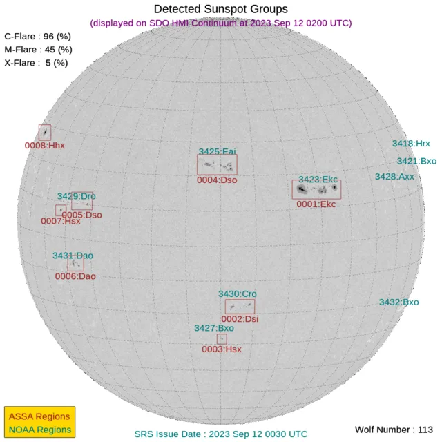 太陽フレアと黒点数(2023年09月12日更新)※中規模太陽フレア&CME到着予測あり