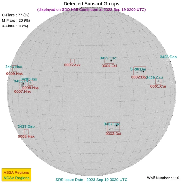 太陽フレアと黒点数(2023年09月19日更新)※CME到着予測あり