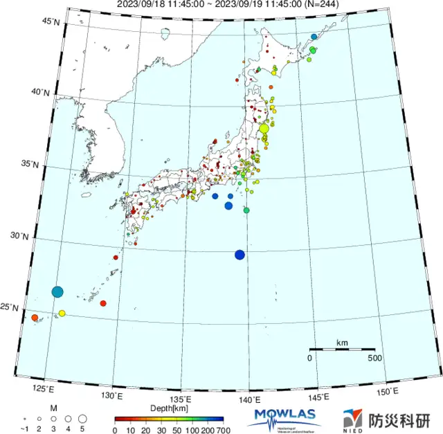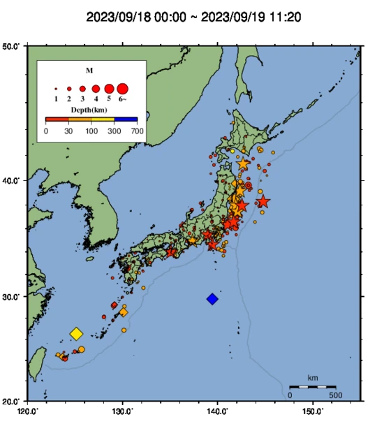 ●Hi-net日本地震分布と気象庁・・・hi-netの小笠原のデータは掲載日がずれて反映されるようです(翌々日に掲載)。掲載されないものもあるようなので気象庁の画像も付けます