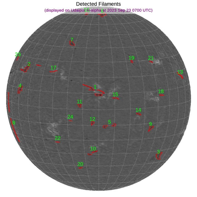 現時点で地球正面の黒点群は[3435, 3438, 3439, 3440, 3442, 3444, 3445]です。←黒点番号が振られていない活動領域でもフレアは発生しますので、 あくまで目安として捉えてください。